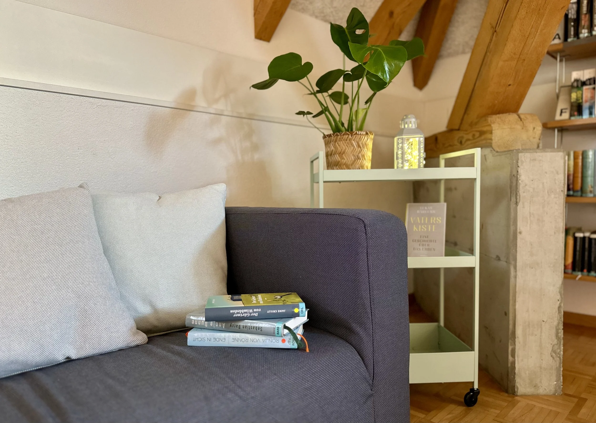 Während der Ausleihe können Sie gerne in der Bibliothek verweilen, schmökern und lesen oder sich mit anderen Besucher:innen austauschen. Den heimeligen Dachstock nutzen wir auch ausserhalb der üblichen Öffnungszeiten für Angebote und Veranstaltungen.